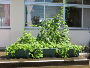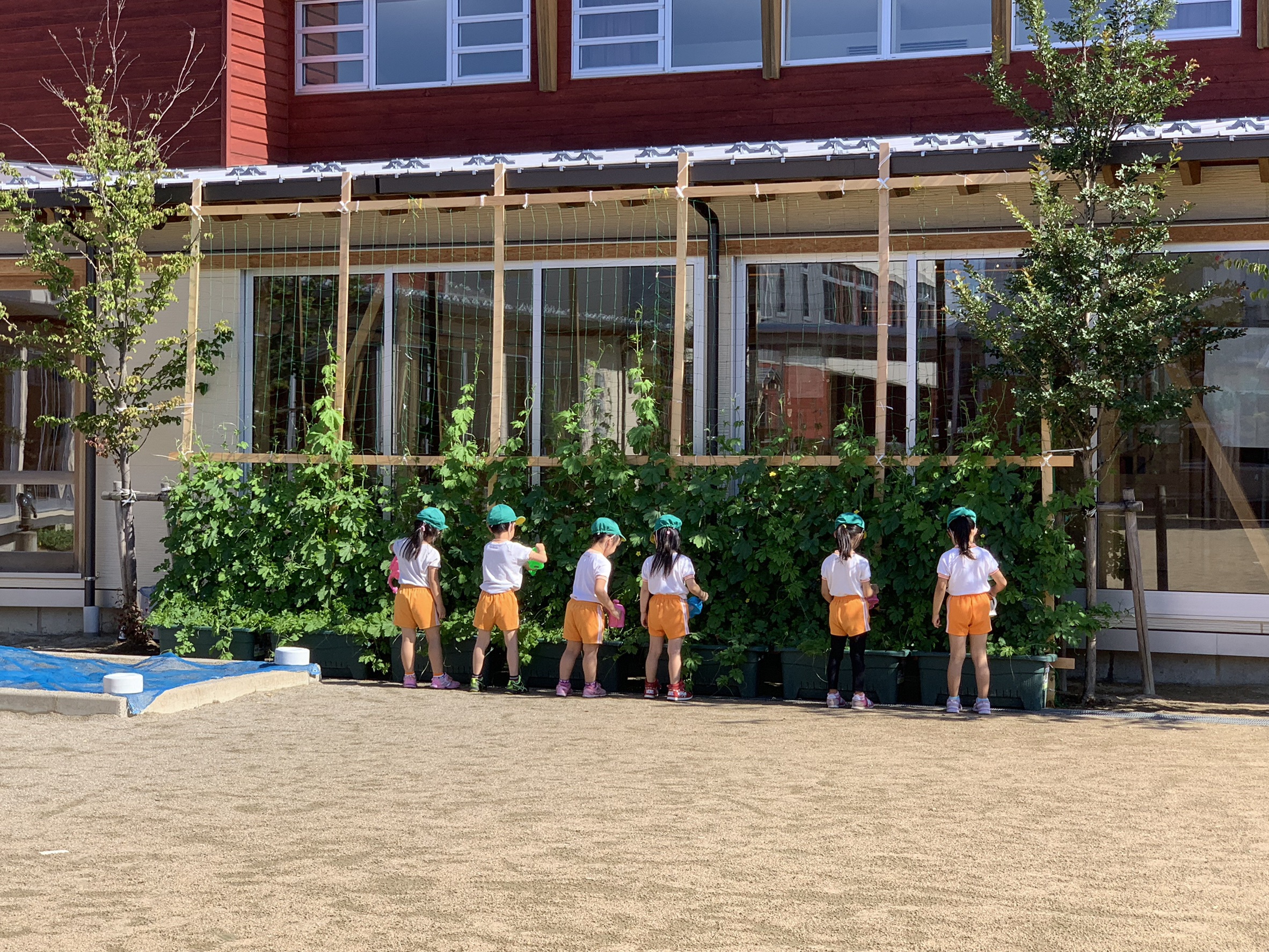 古沢保育所さん、ガンバ村保育園さんから緑のカーテンの様子が届きました! 2019.06.26 古沢保育所さん、ガンバ村保育園さんでは、子どもたちへの環境教育と夏場の省エネ対策の一環として、「緑のカーテン」を設置するため、令和元年5月27日に植え付け作業を実施しました。 令和元年6月25日時点の緑のカーテンの様子がこちら↓ ★古沢保育所 アサガオはツルをぐんぐん伸ばしています。 ゴーヤは葉を密生させて成長しています。 ★ガンバ村保育園 みんなで水やりを頑張っています。 アサガオは葉をどんどん増やしています。